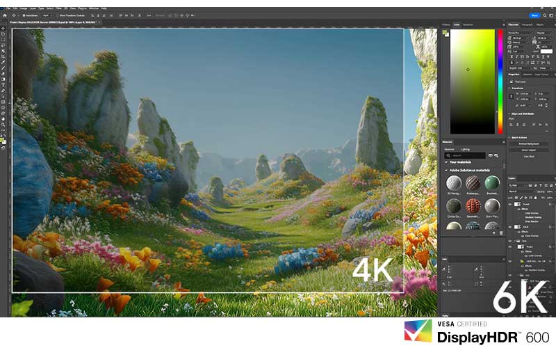 L'écran 6K HDR (6016 x 3384) du PA32QCV affiche une densité de pixels de 218 ppi. La haute densité de pixels permet d'obtenir un texte net et facile à lire, tandis que l'amélioration de la clarté visuelle offre des avantages significatifs aux créateurs engagés dans des projets détaillés.