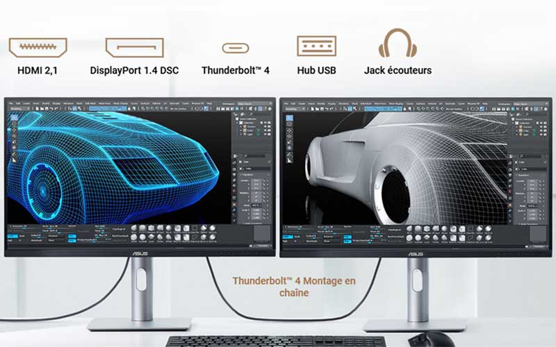 - Connectivité riche, notamment double Thunderbolt 4 jusqu'à 96 W Power Delivery avec mise en chaîne, HDMI v2.1, DisplayPort 1.4 et un hub USB intégré