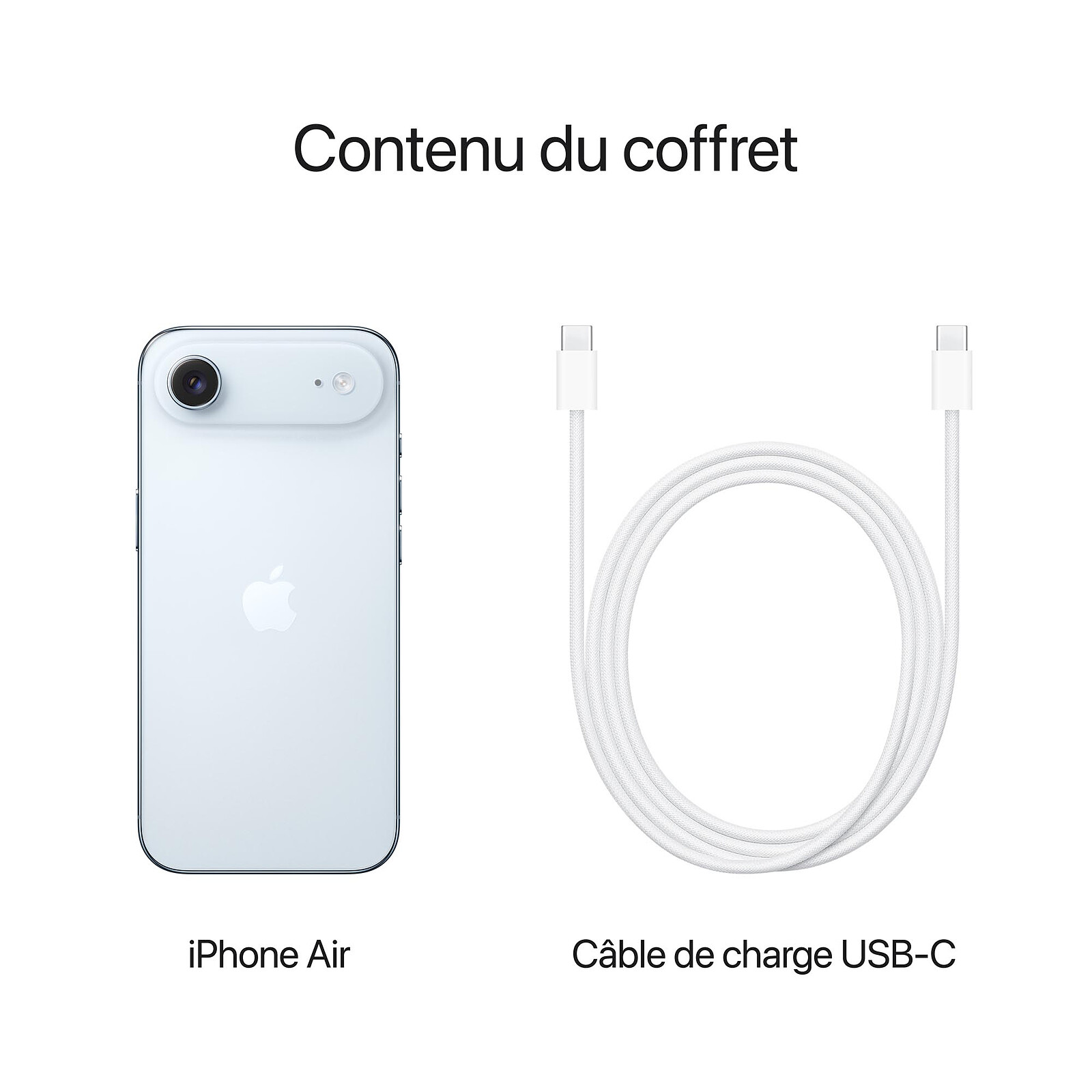 iPhone Air. Le plus fin des iPhone. Écran de 6,5 pouces1, Ceramic Shield résistant à l’avant et à l’arrière, puce A19 Pro, système caméra Fusion 48 MP et caméra avant Center Stage.