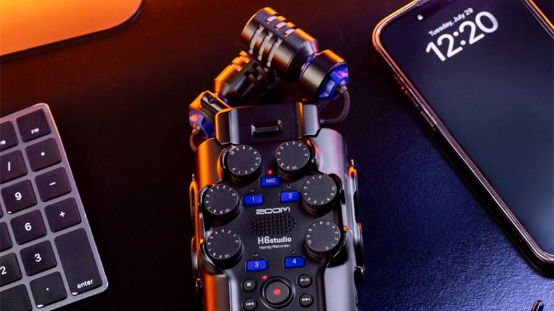 Le H6studio de Zoom est équipé de microphones XY à grande membrane, de quatre préamplis de qualité studio et d'un enregistrement en 32 bit à virgule flottante avec des boutons de gain dédiés. Doté de la technologie de la série F, c’est le plus sophistiqué à ce jour de la série Handy Recorder de Zoom.