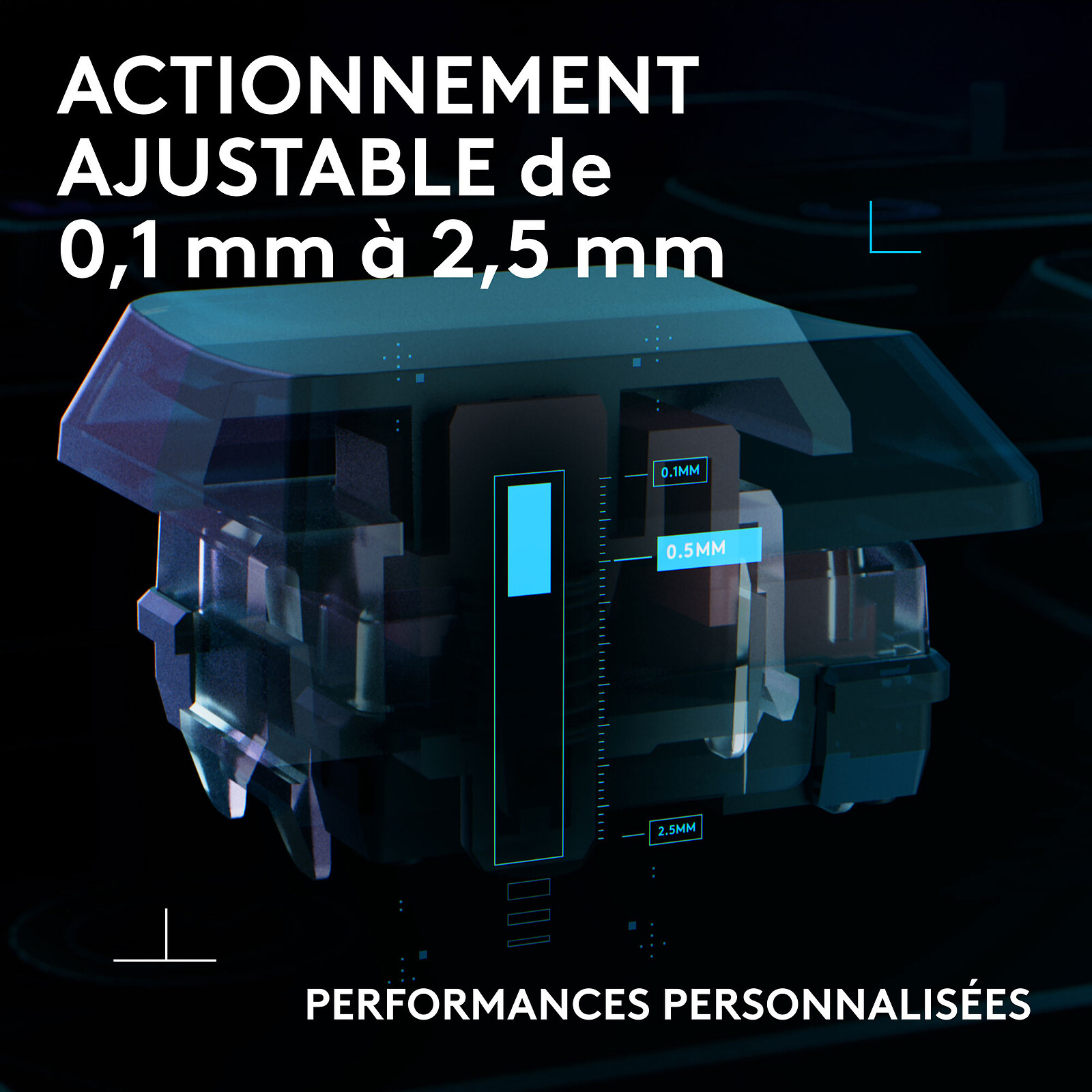 - Switchs analogiques magnétiques ultra-plats : course de 2,5 mm pour une frappe fluide et rapide