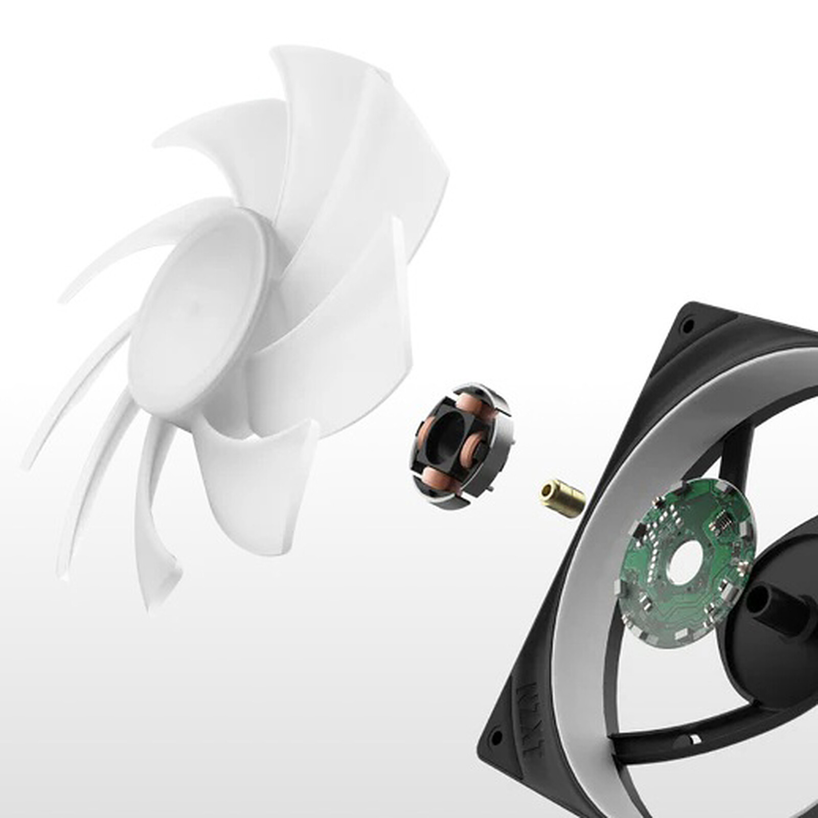 Les ventilateurs NZXT RGB Core série F au cadre unique intègrent naturellement plusieurs ventilateurs pour une installation sans effort tout en assurant un refroidissement exceptionnel, des performances ultra silencieuses et un RGB époustouflant. Le format cadre unique avec ventilateurs intégrés simplifie grandement l'installation, la configuration et le contrôle de l'éclairage. Inutile de raccorder des ventilateurs un à un. Connectez simplement un câble unique à un contrôleur NZXT (vendu séparément) pour contrôler l'éclairage et la vitesse via le logiciel NZXT CAM. Vous pouvez également le connecter à un connecteur ARGB 5V de n'importe quelle carte mère à l'aide du câble répartiteur fourni. La conception des pales des ventilateurs augmente la pression statique pour propulser l'air à travers les espaces étroits tout en garantissant un airflow optimal. Adaptée pour l'aspiration ou l'expulsion. Les paliers hydrodynamiques garantissent un fonctionnement stable et silencieux d'une durée de vie exceptionnelle de 60 000 heures. La lumière des huit LED RGB configurables individuellement sur le moyeu de chaque ventilateur se diffuse à travers les pales semi-transparentes pour des visuels colorés éclatants. Les ventilateurs PWM ajustent de manière dynamique la vitesse de rotation en fonction des températures du PC pour une efficacité optimale et un niveau sonore réduit. Les coins en caoutchouc anti-vibration éliminent efficacement les bruits provoqués par les vibrations pour des performances silencieuses à toutes les vitesses. Contrôlez l'éclairage et la vitesse du ventilateur via le logiciel CAM lorsqu'il est connecté à un contrôleur NZXT (vendu séparément).