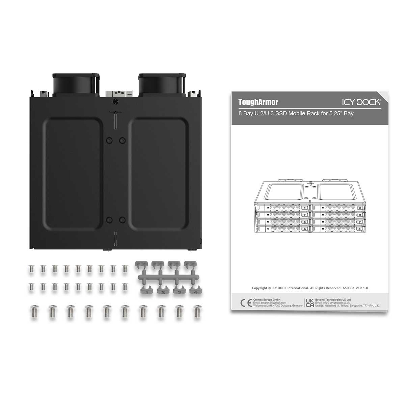 - Compatible avec 8 SSD NVMe U.2/U.3 de 7 mm dans une seule baie externe de 5,25"