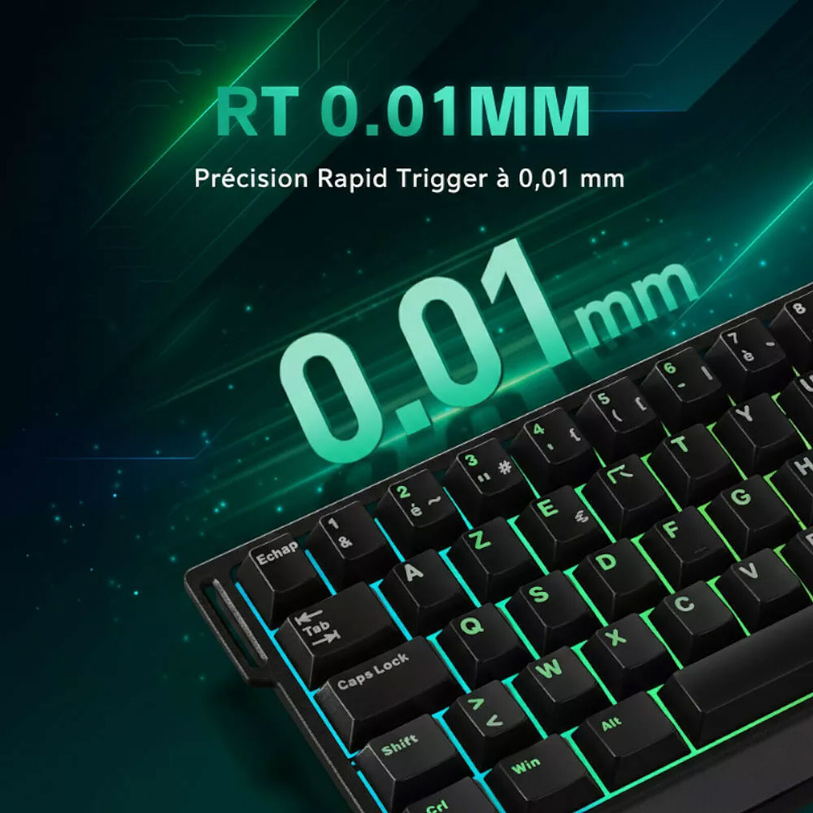 En plus, le système “Rapid Trigger” réinitialise la touche dès que vous la relâchez, rendant les rebonds immédiats et parfaits pour des combos ou déplacements précis. L’expérience utilisateur s’en trouve transformée : frappes nettes, réponses immédiates, une sensation de contrôle total dans vos sessions les plus intenses.
