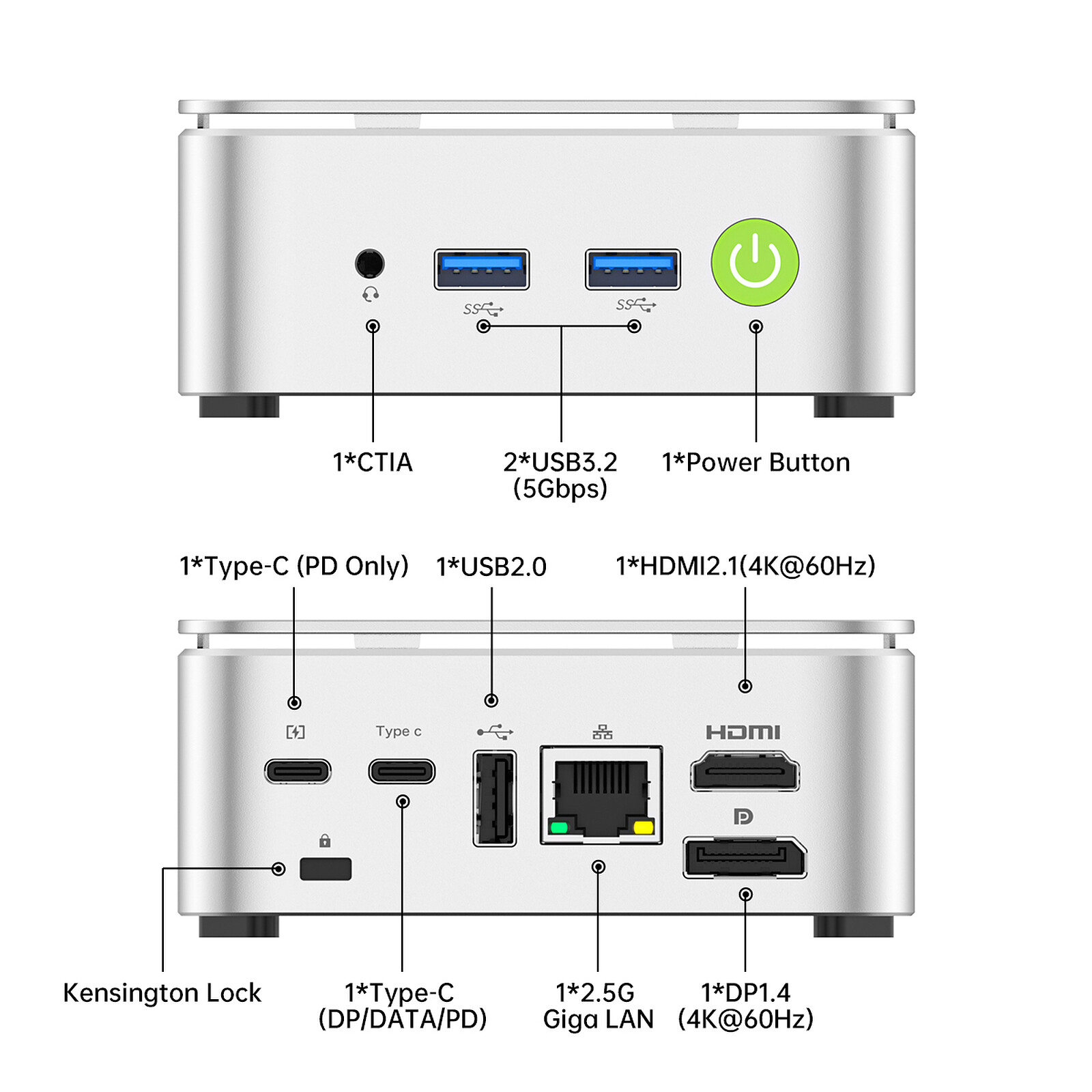 Ultra-léger (284 g) et discret (103 × 98 × 42 mm), le G10 s'intègre parfaitement dans tous types d'environnements (bureau, chambre, salon et environnement d'entreprise). Il propose une connectique complète avec USB 3.1, USB 2.0, Ethernet 2.5G, Wi-Fi 5, Bluetooth 5.0, et audio jack 3,5 mm. Son système de refroidissement à turbine en cuivre assure un fonctionnement silencieux et optimal. Avec Windows 11 Pro préinstallé, il conviendra aussi bien aux particuliers qu’aux professionnels dans des secteurs variés comme l’éducation, la création, le streaming ou le divertissement.