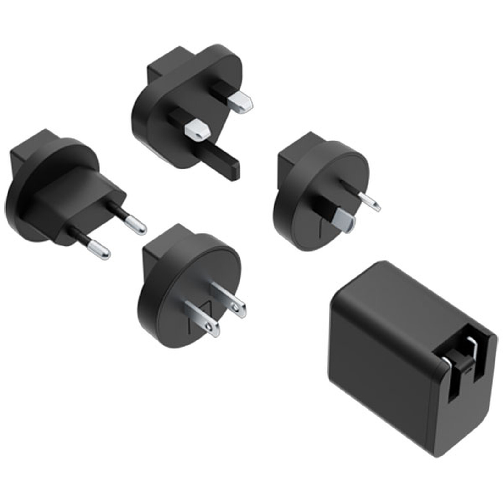 - Quatre adaptateurs de prise inclus : UE, Royaume‑Uni, Australie, Amérique du Nord