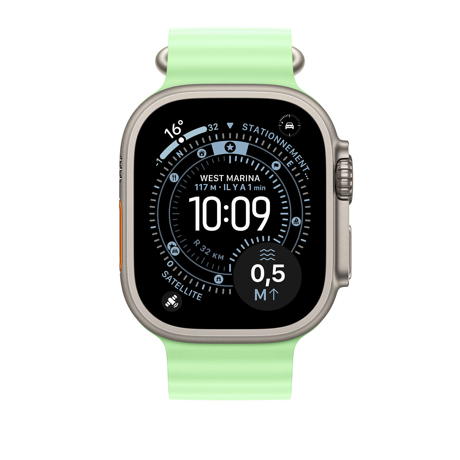 Apple Bracelet Océan 49 mm finition titane naturel Vert Fluo |