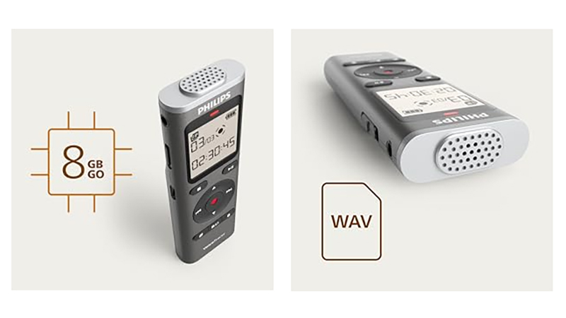 Enregistrement vocal au format WAV et 8 Go de mémore interne