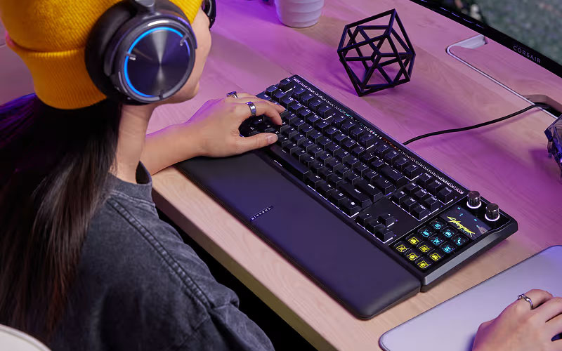 Le clavier intègre aussi une mémoire embarquée 8 Mo, un réglage en hauteur, le NKRO avec 100% Anti-Ghosting, et un passthrough USB 2.0 pour connecter un périphérique. Il est compatible PC ou Mac (Windows 10 ou macOS 10.15) et s’appuie sur CORSAIR WEB HUB et Elgato Stream Deck.