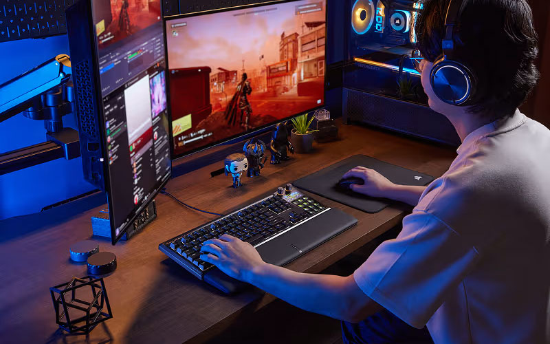 Le Corsair Galleon 100 SD est un clavier gaming mécanique au format Full Size qui intègre une interface Stream Deck pour piloter jeux, applis et streaming depuis le clavier. Pensé pour les joueurs, créateurs et streamers, il combine des commandes personnalisables (touches LCD, molettes, écran) et des performances orientées réactivité. Sa connectivité filaire et ses fonctions dédiées (médias, verrouillage Windows, passthrough USB) en font une solution complète pour centraliser les actions essentielles au quotidien.