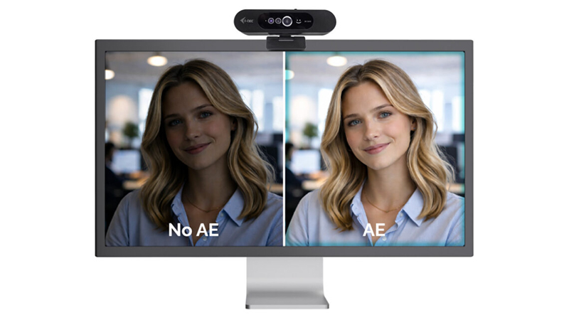Grâce à l’optimisation automatique de l’image, vous êtes toujours bien mis en valeur, quel que soit l’éclairage environnant. Les fonctions de balance des blancs automatique (AWB), d’exposition automatique (AE) et de contrôle automatique du niveau de noir (ABLC) adaptent en temps réel les réglages pour des couleurs naturelles, un contraste équilibré et un rendu visuel professionnel sans aucun effort manuel.