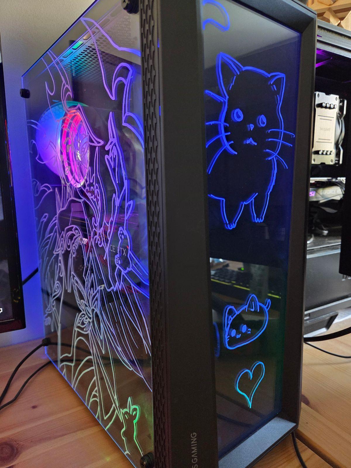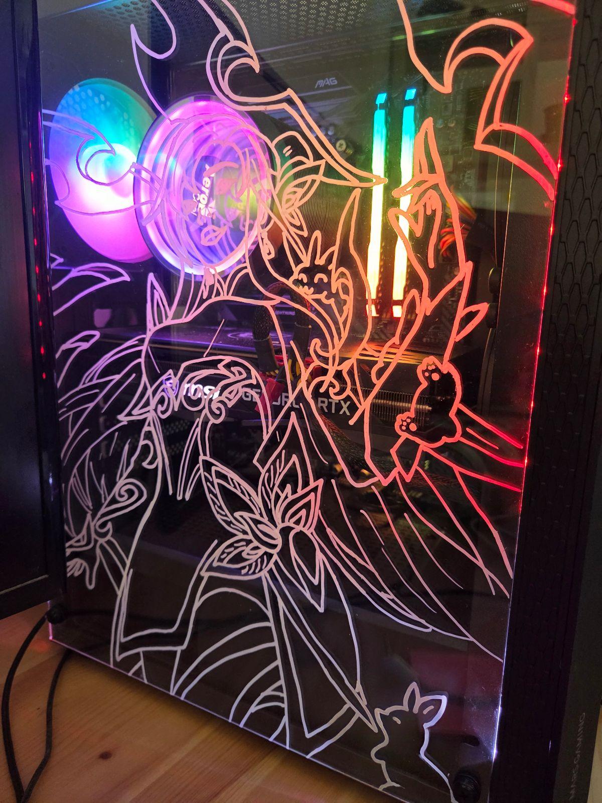 Le gros plus évidemment c'est son côté artistique avec le dessin sur les parties vitrées (avant et côté). Attention cependant, autant la vitre façade est teintée et le dessin se voit très bien, autant la vitre latérale est bien transparente, donc tout élément lumineux à l'intérieur du boîtier peut "cacher" le dessin.