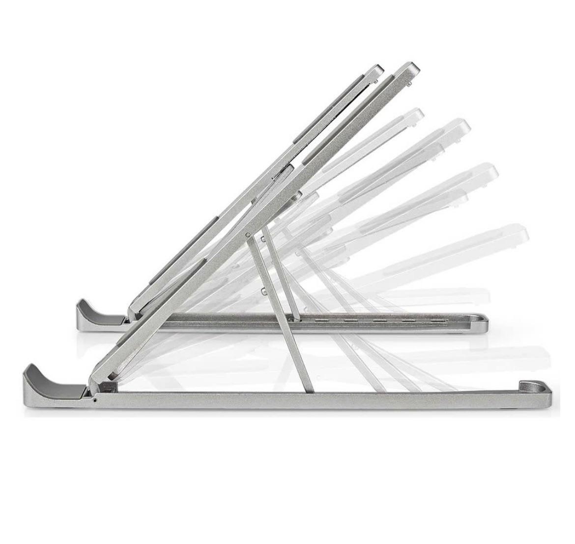 Alors non seuelment ce support NEDIS à tenu plus de temps que le pied officiel, mais en plus il fait mieux son boulot. Les patins antiglisse tiennent la tablette bien en place, les encoches sont suffisement profond pour tenir le poid du grand écran que j'y dépose en plus de ma main...