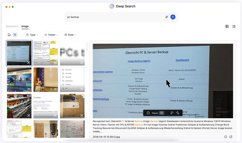Grâce à Deep Search, le moteur de recherche alimenté par l’IA, BeeDrive analyse le contenu de vos fichiers (textes, images, graphiques) pour vous permettre de retrouver exactement ce que vous cherchez, même si vous ne connaissez pas le nom du fichier. La recherche fonctionne hors ligne et prend en charge plusieurs formats (PDF, DOCX, PPTX, images, etc.). En parallèle, BeeDrive assure une sauvegarde automatique de vos dossiers, avec jusqu’à 5 versions conservées pour éviter toute perte de données. La solution inclut également une licence de 3 ans d’Acronis True Image Essentials pour une protection complète de votre système et de vos fichiers.