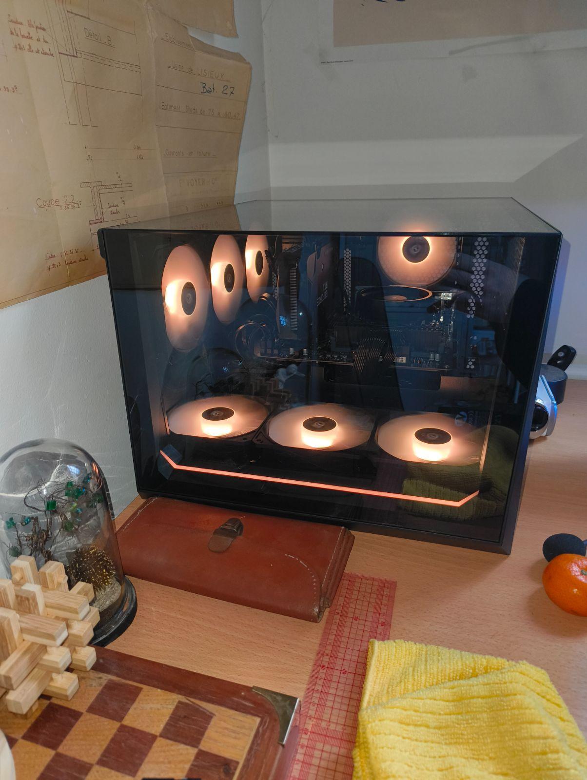 Boitier plutôt jolie. Par contre je suis un déçu de la place à l'arrière qui peut rendre le câble management très compliqué à faire si on est pointilleux. Il reste tout de même très bon pour le air flow.