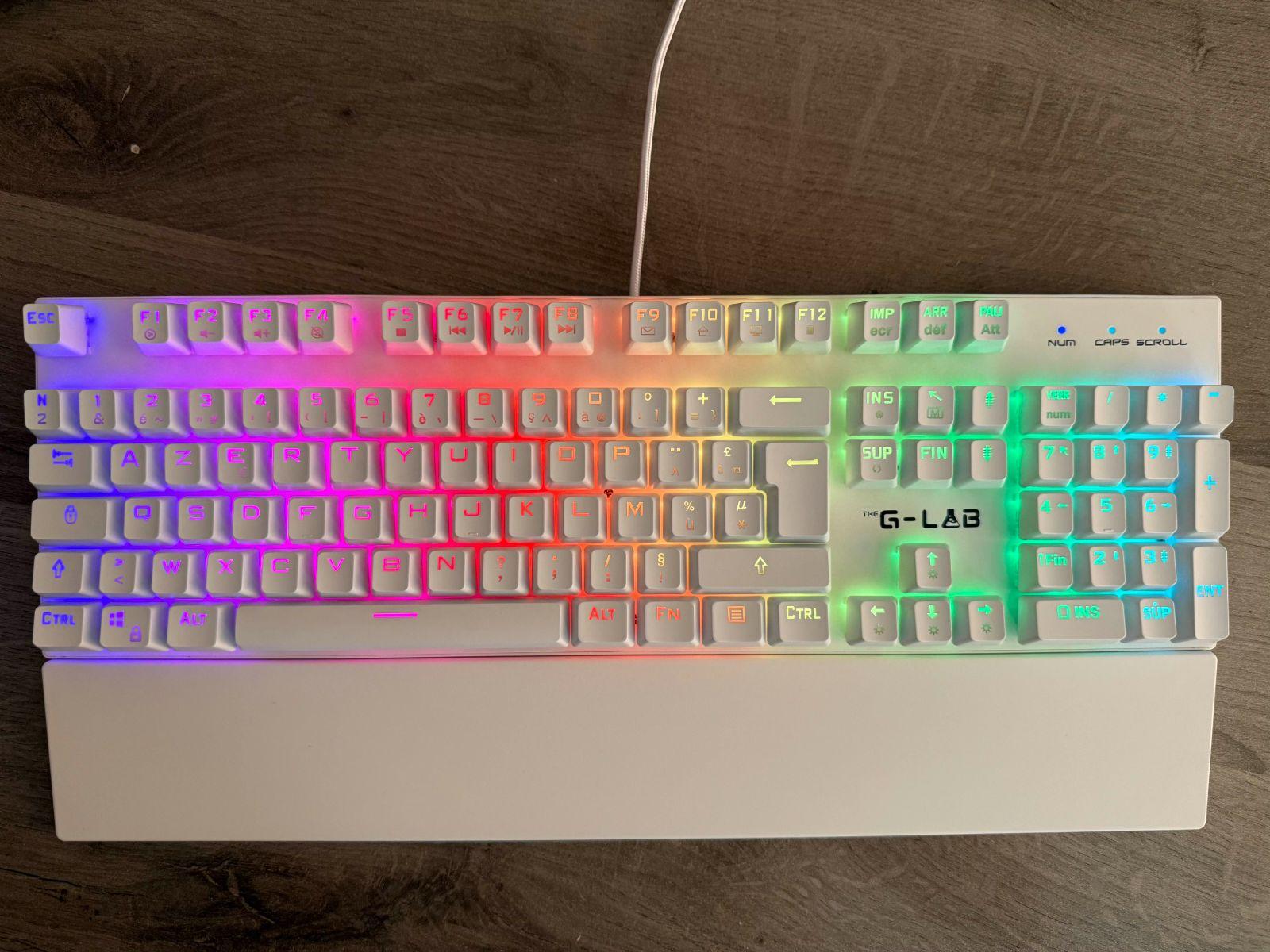 C'est un très bon clavier, rapport qualité/prix rien a dire, de très bonne touche mécanique, avec la petite tablette repose poignet magnétique, vraiment très satisfaite de ce clavier. Je ne connaissais pas la marque G-LAB. Et également très satisfait de ldlc de l'envoie à la réception.