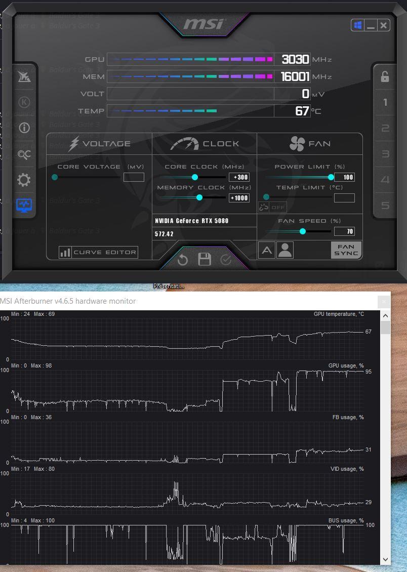 +300Mhz GPU et +1000Mhz sur la mémoire. Je l'utilise comme ça en jeu.