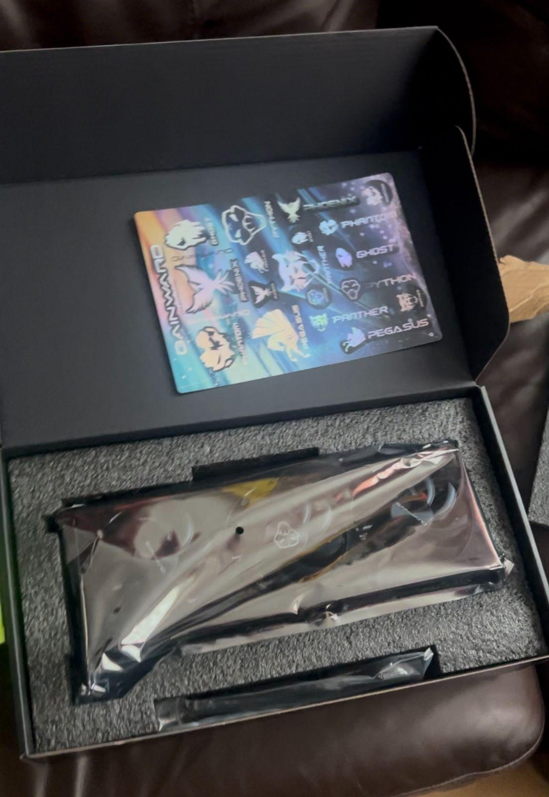 La carte fonctionne bien, pas de ROPs manquant, mais le cooling est leger, backplate en plastique, reste en dessous de 80°c en jeux, mais cooling audible. La boite est belle est contient un jeux d'autocolants Gainward très sympas, et l'adaptateur pour la prise d'alim.