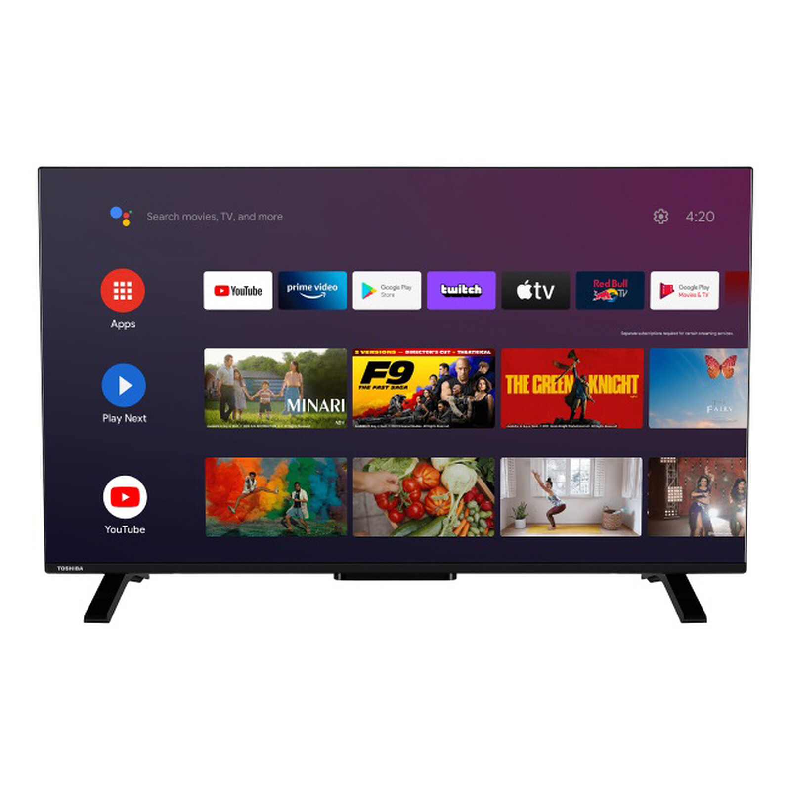 Avec Android TV embarqué, cette Smart TV Toshiba transforme votre divertissement quotidien. Accédez à de nombreux contenus et retrouvez un accès pratique et rapide à Netflix, Prime Video, YouTube ou bien encore Rakuten TV directement depuis la télécommande. Grâce à la télécommande avec micro intégré, vous pourrez demander à Ok Google d'effectuer certaines actions.