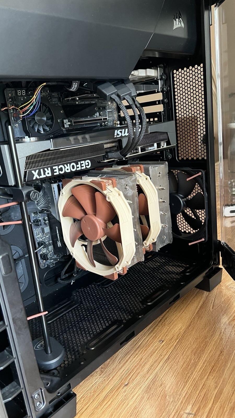 A ce prix là, se retrouver à refaire tout mon câble management m'a énervé: tout faire cheminer de manière propre pour assurer la connexion des 3 câbles d'alimentation PCIe 8 broches, sans bloquer le flux d'air dans le boitier, et sans tordre le connecteur d'alimentation super fragile et réputé pour cramer, ça fait cher payer une évolution de 4 génération ratée.