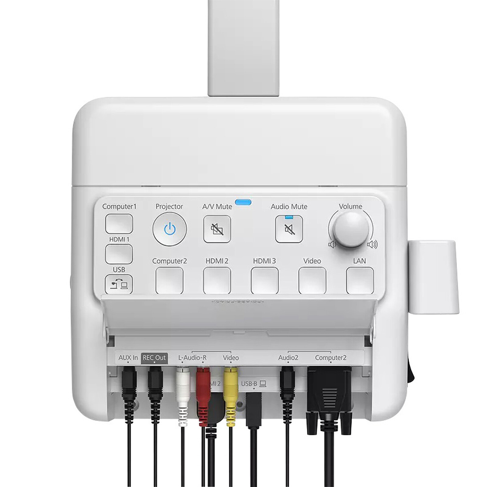 L’accès aux fonctionnalités clés de votre écran Epson n’a jamais été aussi facile grâce au boîtier Epson ELPCB03N. Ce boîtier de contrôle A/V mural pratique complète parfaitement les solutions d’affichage à courte et ultracourte focale d’Epson en facilitant l’accès aux fonctionnalités clés telles que la sélection des sources d’entrée, la fonction de partage d’écran (y compris l’utilisation de deux entrées HDMI) et une gestion des câbles ordonnée et sécurisée. Il est même doté d’une fonction LED conviviale de changement de couleurs pour les utilisateurs daltoniens.
