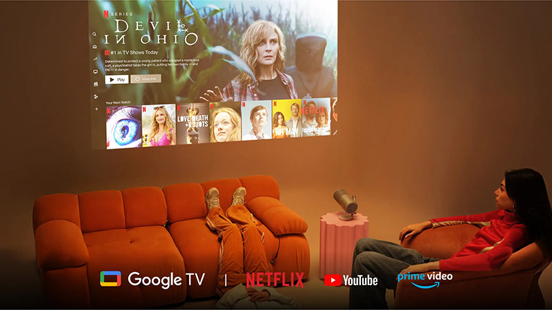 Apportez les blockbusters dans n'importe quelle pièce avec Google TV, Netflix, Prime Video intégrés au MoGo 4 Laser. Pas d'installation, pas de complications, allumez et laissez-vous captiver.
