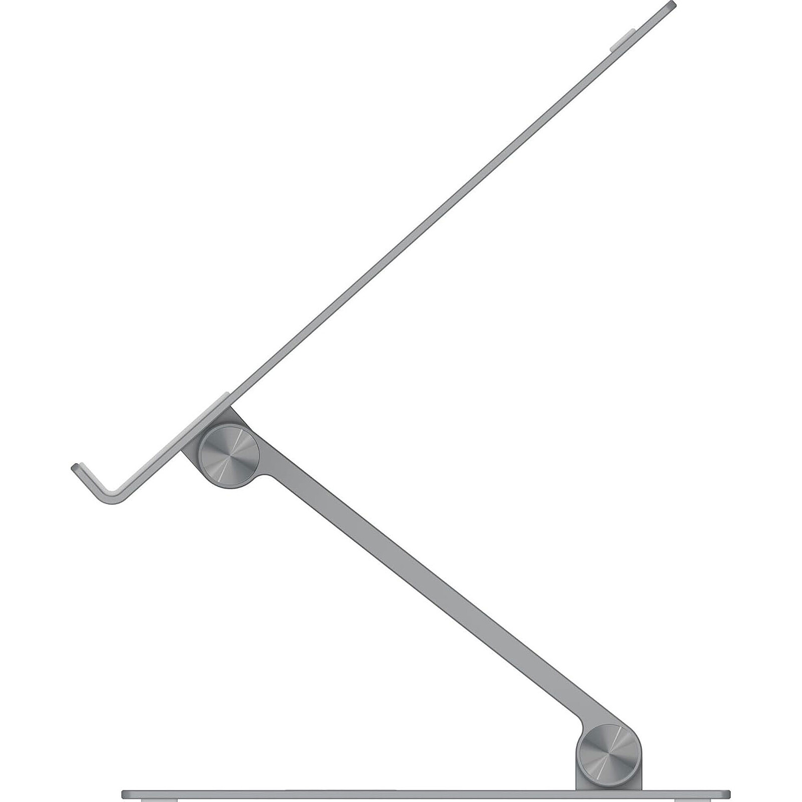 La structure en aluminium anodisé offre robustesse et résistance aux rayures. Des évents découpés sur mesure améliorent la ventilation passive, aidant à évacuer la chaleur des portables puissants. Enfin, les coussinets en caoutchouc antidérapants assurent une stabilité parfaite même en ajustant l’angle ou en cas de vibration.