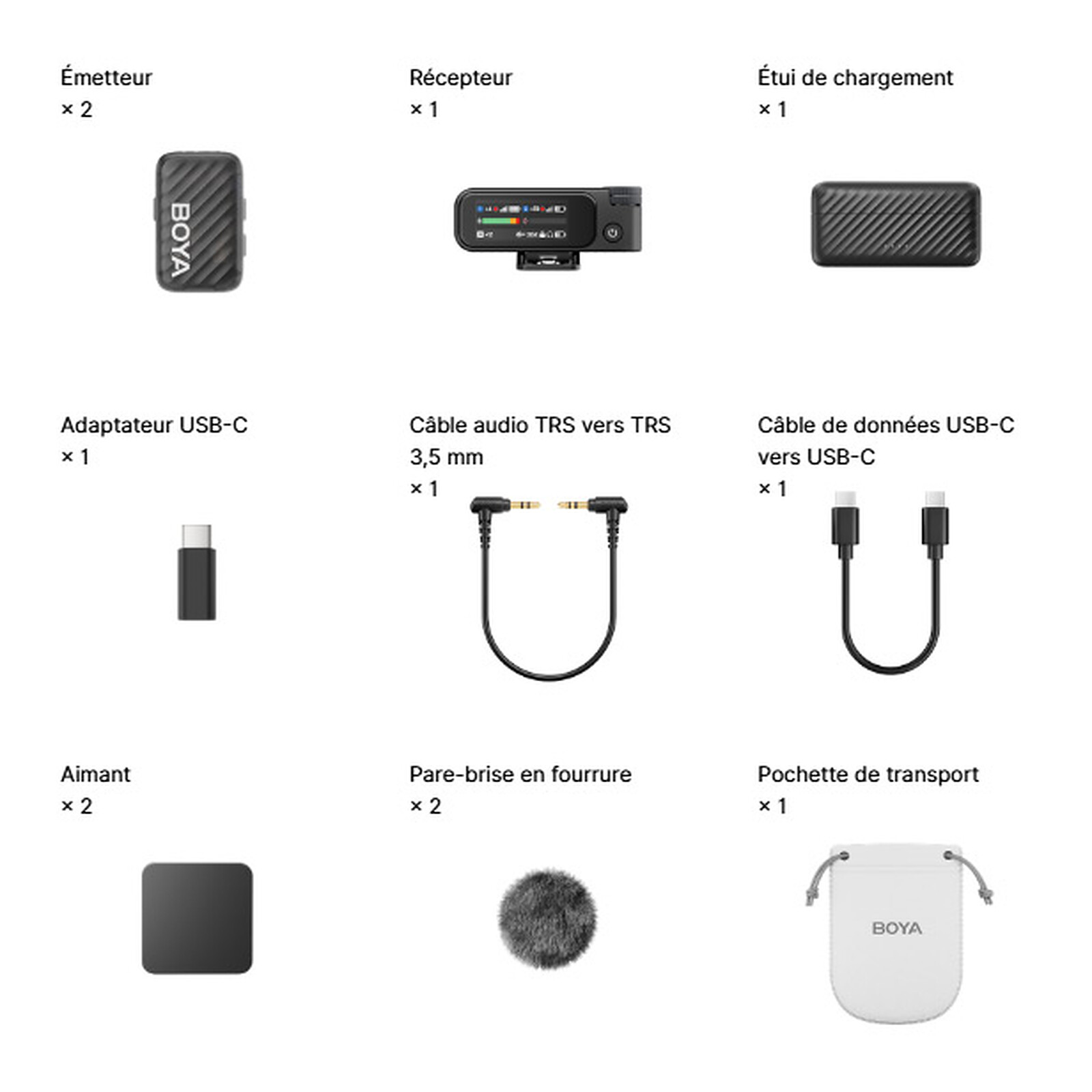 - Boyamic 2 : 2x émetteurs + 1x récepteur + 1x étui de charge