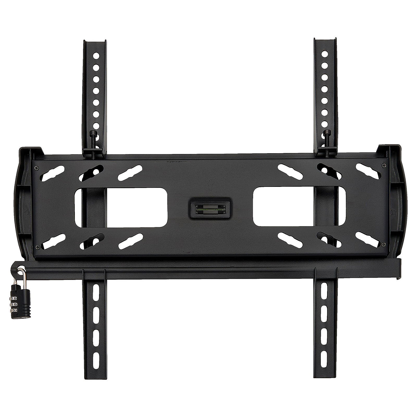 Ce support mural pour écran est fabriqué en acier robuste avec une finition noire thermolaquée résistante aux rayures. Les ouvertures arrière aux bords lisses facilitent l'accès aux câbles. Un niveau à bulle intégré garantit une fixation uniforme de votre écran.