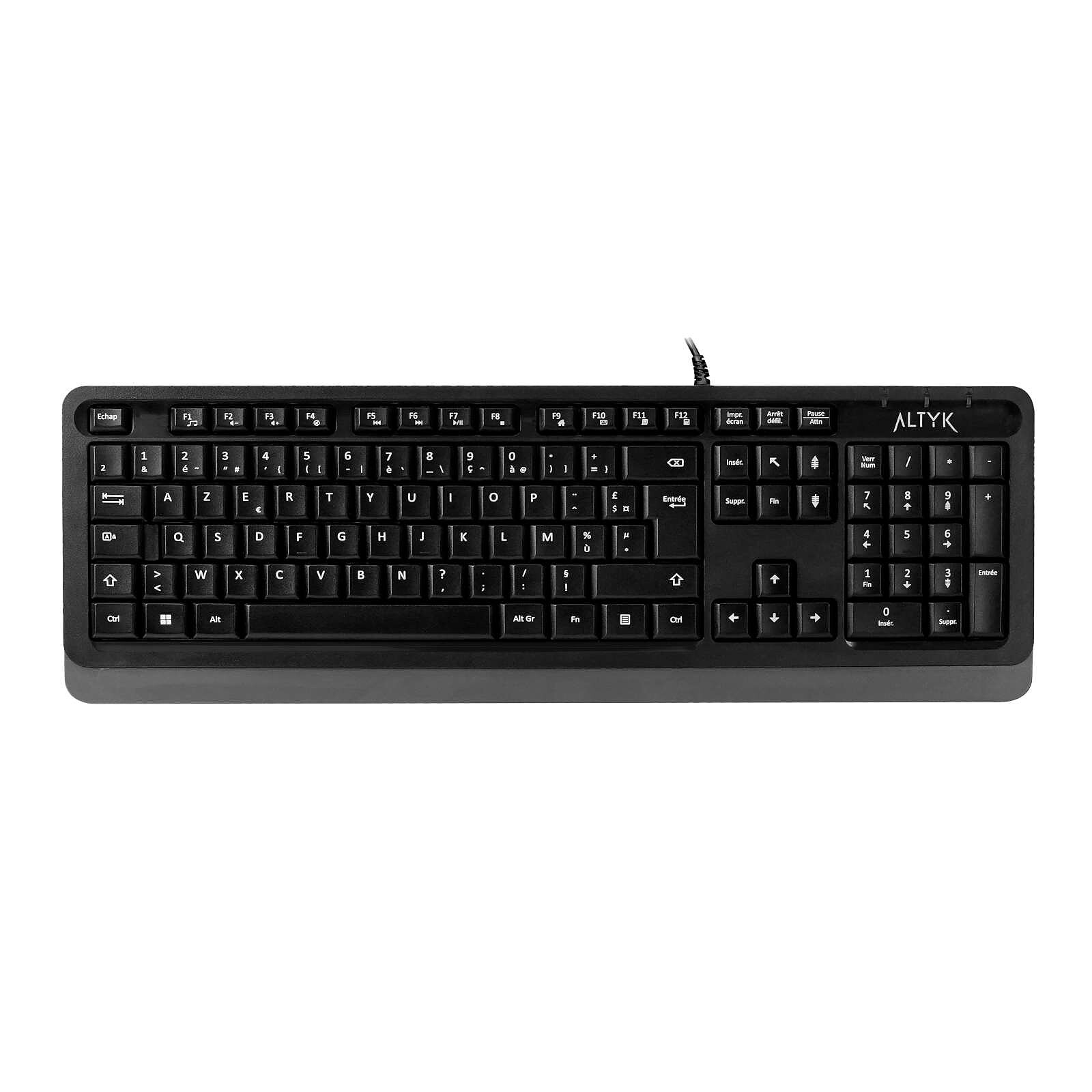 Altyk C1100 est un ensemble clavier souris filaire conçu pour la bureautique. Il se compose d'un clavier pleine-taille avec pavé numérique intégré et d'une souris optique ambidextre 1600 dpi. Cet ensemble robuste et fiable est idéal pour une utilisation quotidienne et intensive.