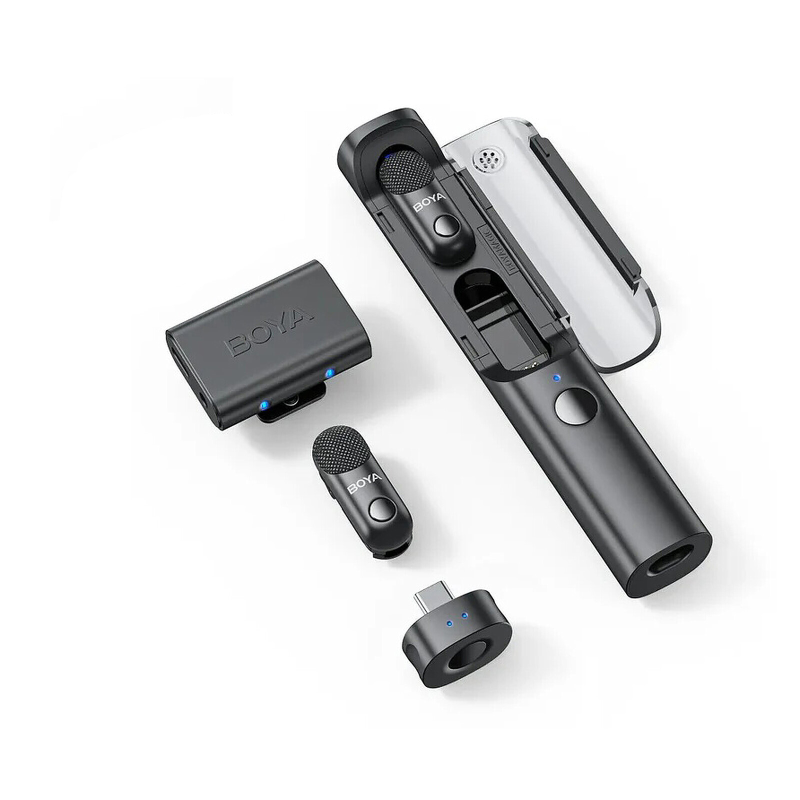 - Boya Magic : 2x émetteurs + 2x récepteurs (USB-C et 3.5 mm TRS) + 1x étui de charge