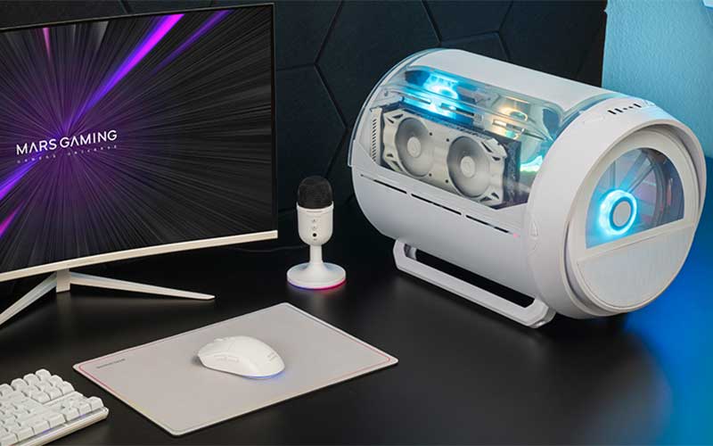 Mars Gaming bouscule les codes établis et offre une esthétique gaming unique avec son boîtier MC-CYLON qui présente un design cylindrique inspiré des turbines à hautes performances. Il bénéficie d'un spectaculaire ventilateur frontal RGB Chroma de 200 mm et d'un ventilateur arrière de 120 mm. son design "OpenView" avec fenêtre supérieure incurvée et son châssis compact Micro-ATX allient compacité et performance.