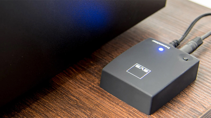 Le module émetteur est dans un meuble et le caisson placé a environ, 7 a 8 m de l'émetteur et il n'y a rien à dire.