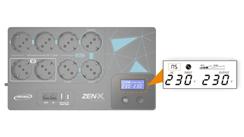 L'onduleur Zen-X Master d'Infosec protège les équipements informatiques et multimédias des coupures de courant, des surtensions et intègre une astucieuse Fonction Eco. Cette fonction permet de gérer plus efficacement l'énergie et d'éviter que des appareils non utilisés consomment de l'électricité inutilement. Lorsqu'un courant électrique est détecté sur la prise Master, les deux prises Slave sont automatiquement alimentées. A l'inverse, lorsqu'aucun courant n'est détecté sur la prise Master, les prises Slave sont automatiquement coupées. Cet onduleur est donc une solution idéale pour les loisirs numériques et les applications bureautiques pro.