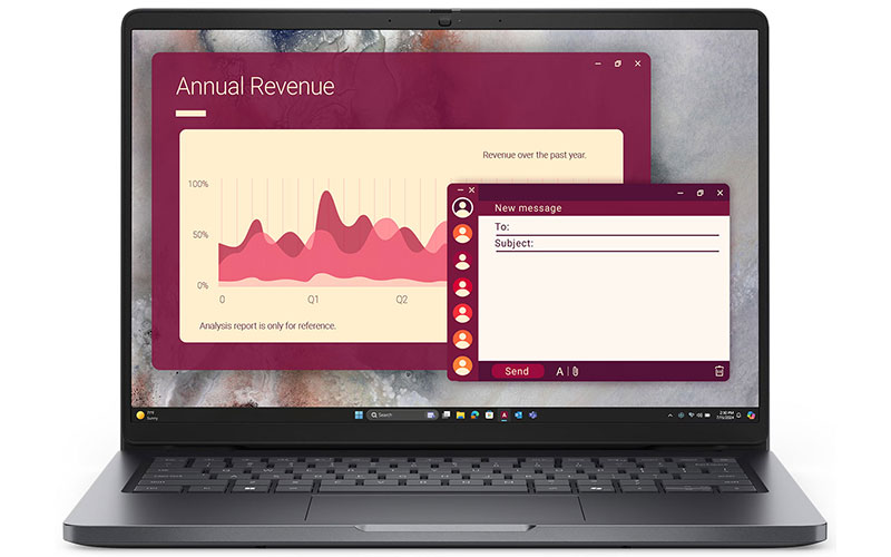 Grâce à Copilot dans Windows, vous avez instantanément accès à votre assistant IA personnel à l’aide de la touche Copilot de Windows. L'écran de 14 pouces au format 16:10 avec bordures fines, offre 5 % de surface d’écran en plus pour le même encombrement. La productivité sera optimisée grâce à une batterie longue durée et à un écran à faible consommation d'énergie.