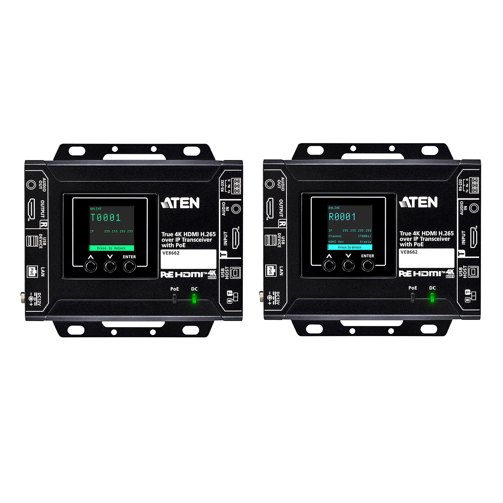 - 1 x VE8662 Émetteur-récepteur HDMI H.265 sur IP True 4K avec PoE