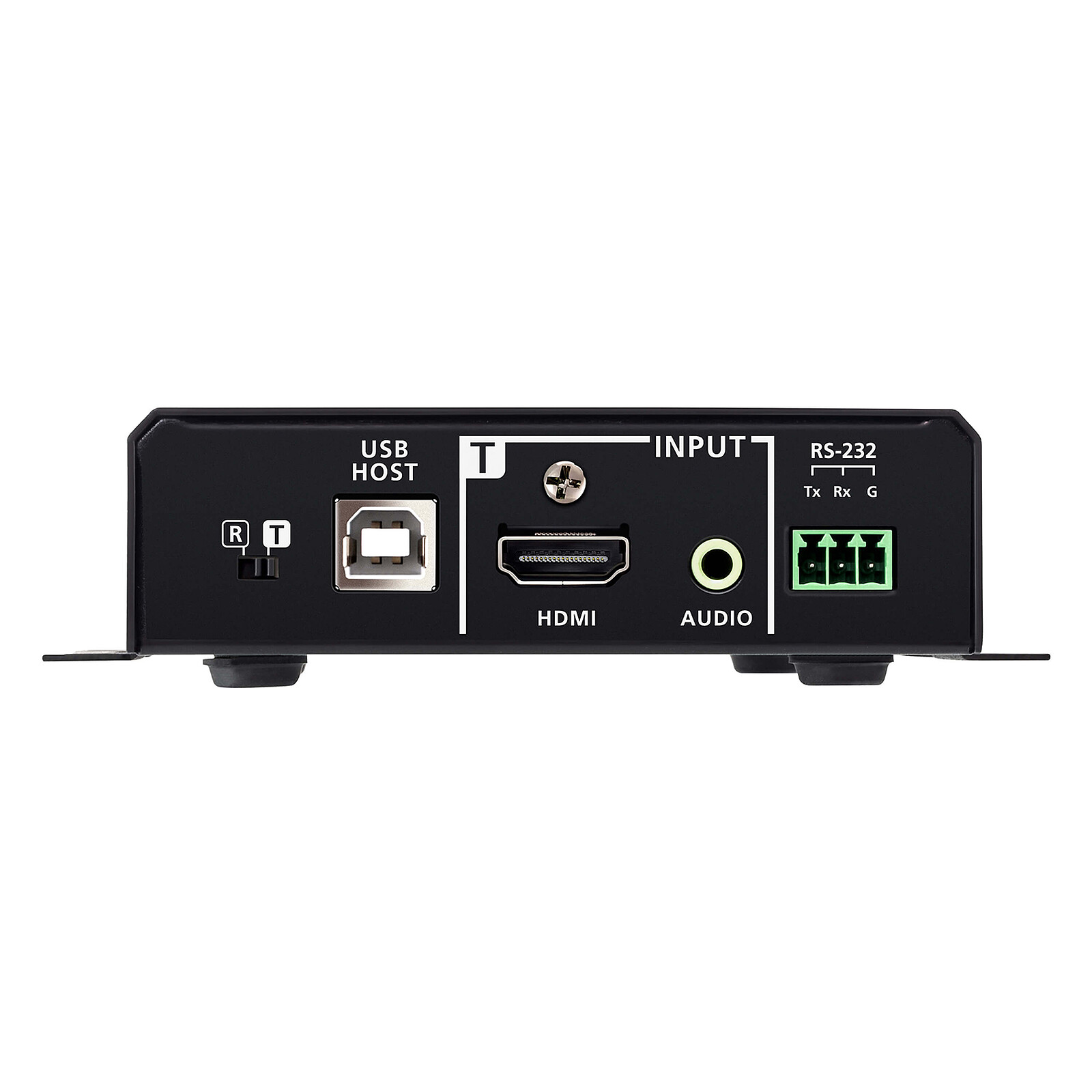 - Entrée : 1 x HDMI Type A femelle (noir) / 1 x mini-jack stéréo femelle (vert)