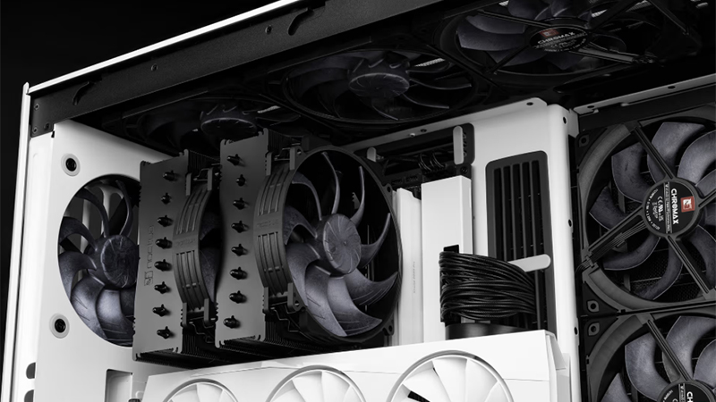 Digne successeur du célèbre NF-A15 et bénéficiant des dernières innovations technologiques issues du NF-A12x25, le ventilateur 140 mm Noctua NF-A14x25r G2 Chromax Black est le dernier de la firme Autrichienne. Sa turbine est fabriquée avec le polymère à cristaux liquides Sterrox LCP et bénéficie de nombreuses optimisations technologiques qui offrent des performances encore plus élevées que celles de son prédécesseur : turbine Progressive-Bend, Flow Acceleration Channels, Centrifugal Turbulator hub et un espace annulaire (pale-cadre) de seulement 0.7 mm. Ce modèle est parfaitement indiqué pour les ventirads Noctua récents au format 140 mm ainsi que pour optimiser les modèles des séries NH-D15(S) ou NH-U14S.