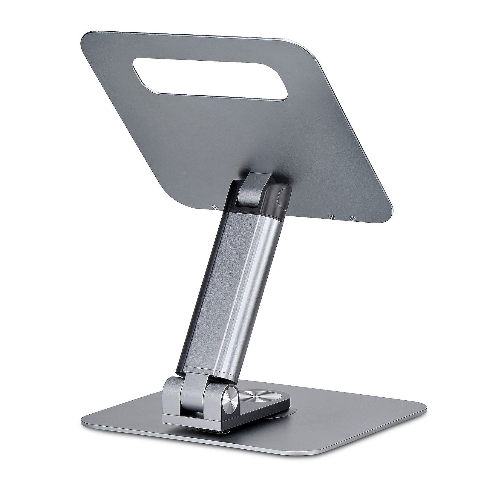 - Base pivotante à 360° : rotation fluide pour ajuster l’angle de vue et partager l’écran