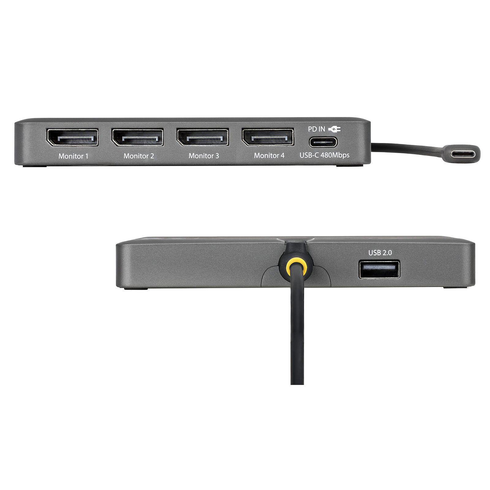 StarTech.com Adaptateur USB-C vers 4x DisplayPort 4K 60Hz + 1x port USB-A 2.0 + 1x port USB-C Power Delivery 140W |