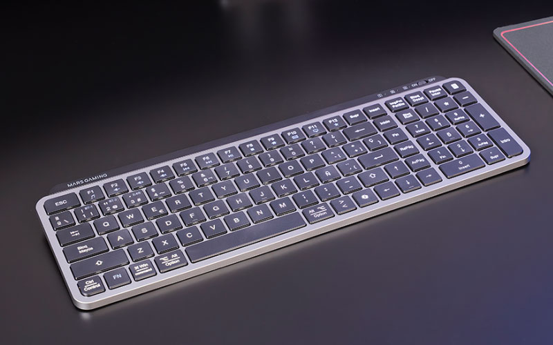 Le MK-SILENKEYS adopte un format complet avec pavé numérique dans un châssis fin et compact. Ses touches à profil bas associées aux switchs en ciseaux assurent une frappe stable et silencieuse, adaptée aux environnements partagés. Il propose une connexion via Bluetooth 5.1 (double profil) ou en RF 2.4 GHz grâce à l’adaptateur USB inclus.