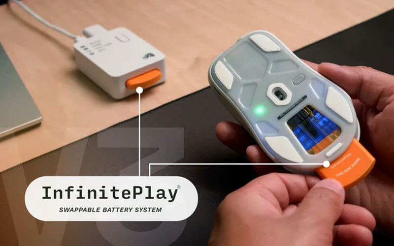 La souris Model O3 Wireless révolutionne l’autonomie des souris gaming avec son système de batteries interchangeables à chaud. Il suffit de remplacer la batterie vide par une seconde batterie chargée pour continuer à jouer instantanément. Pendant l’échange, le Guardian Battery System maintient la connexion active pendant plus de 10 heures afin d’éviter toute interruption. Le hub fourni sert à la fois de station de recharge et de récepteur pour la connexion sans fil haute performance.