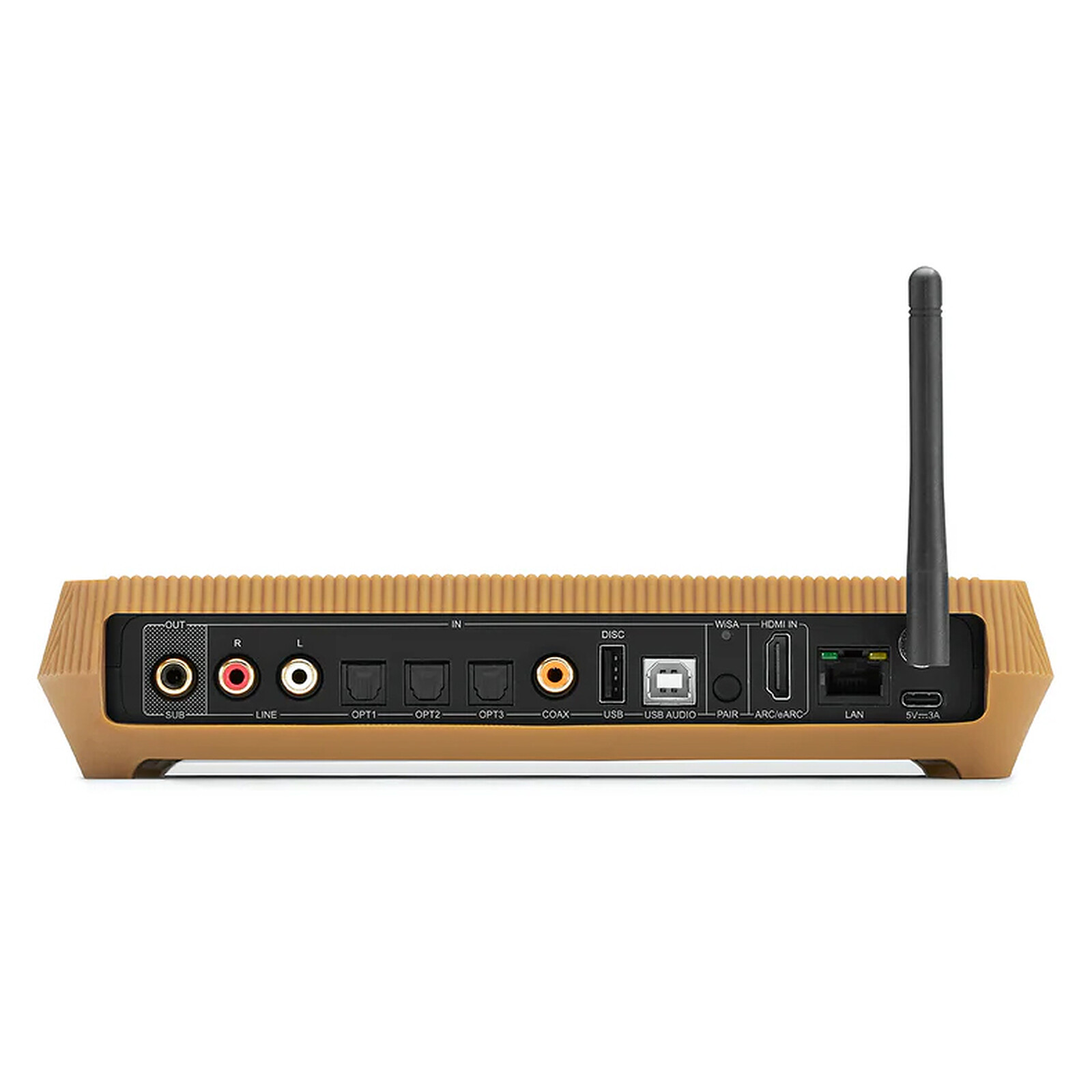 - Connectique (via Stereo Hub 2) : HDMI ARC (CEC) / USB-B (ordinateur) / USB-A (lecture stockage) / 3 x entrées optiques / 1 x coaxiale / 1 x RCA stéréo