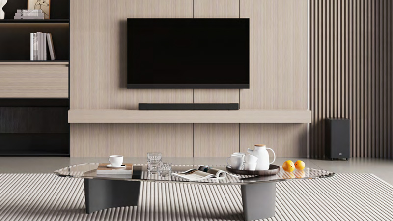 Pensée pour une intégration facile, elle dispose de connexions HDMI eARC, HDMI et optique, assurant une transmission audio de haute qualité et une compatibilité optimale avec vos équipements. La connectivité Bluetooth permet également de diffuser facilement votre musique depuis un smartphone ou une tablette, même lorsque le téléviseur est éteint.